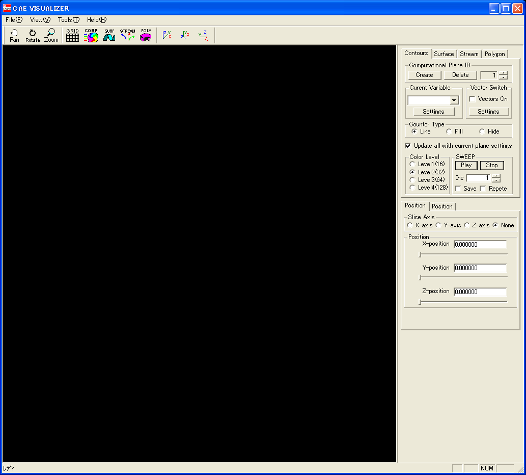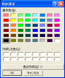 このボタンをクリックすると右のような、”色の設定パレット”が表示されます。このパレットで色を選択し、”OK”ボタンをクリックすると、ドメインの背景色を変更することができ、この背景色の状態で、流れ場の計算結果の可視化や形状データを可視化することがます。