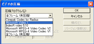 このボタンをクリックすると、この行為以降の手動操作により、ドメインに可視化された画像をSAVE AS ENDをクリックするまでAVIファイルとして保存できます。 このボタンクリック後に起動する、”ビデオの圧縮”ダイアログボックスでは、Microsoft Video1を選択してください。