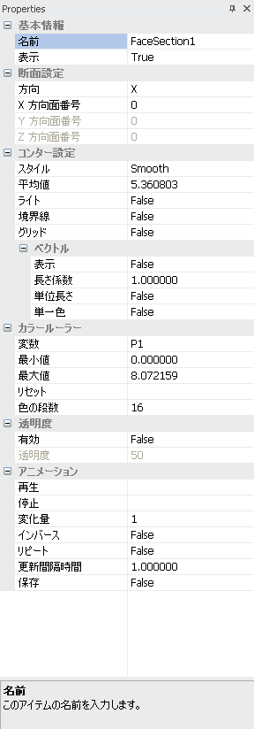 等値面のプロパティの設定することができます。 各プロパティの詳細については、