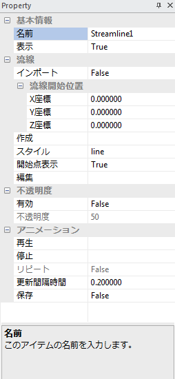 流線のプロパティの設定することができます。 「編集」以外の各プロパティの詳細については、