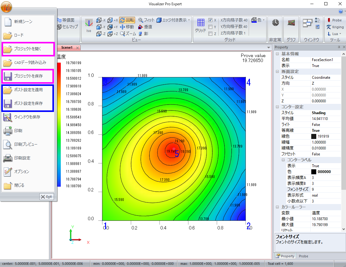 また、同じ条件の(変数が同じでかつ格子数が同じ)他のデータで、現在の設定を適用したい場合は、「ポスト設定を保存」で現在の設定を保存し、