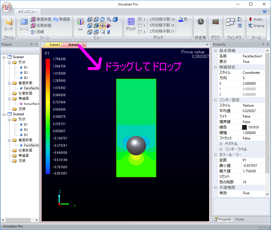 この機能を使うとロードした複数の計算結果を並べて表示することができます。